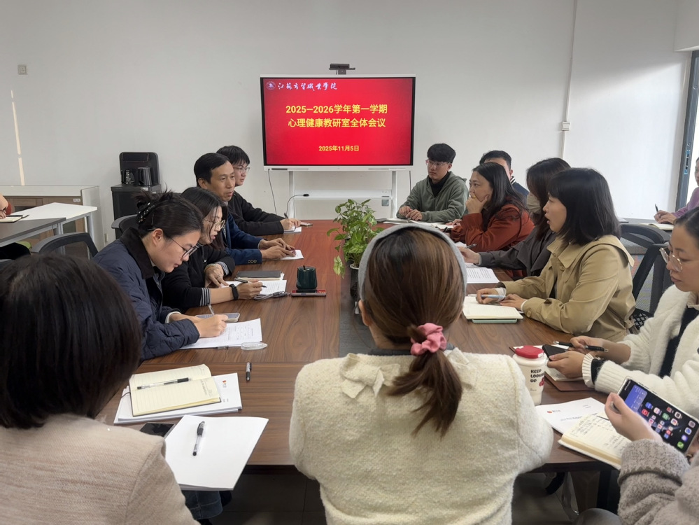 为进一步规范教学管理,提升大学生心理健康教育课程教学质量,11月6日下午,通识教育部在心理中心210会议室组织召开了2025-2026学年第一学期心理健康教育课程教学工作会议。通识教育部直属党支部书记、主任朱克涛,心理健康教研室主任姜飞及教研室全体专兼职教师参加会议,会议由姜飞主持。